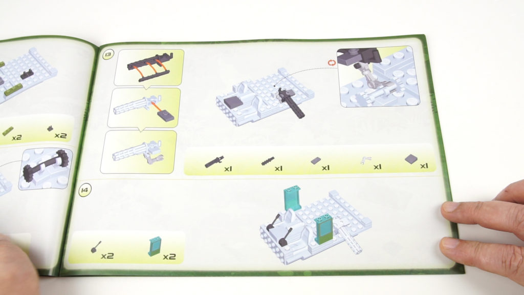 The construction of the Huey is divided into 2 phases. Overall, we get 119 construction steps. At the end of the instructions there are 2 pages with the parts list. Only a few parts are built per construction step, so that these colored parts are very easy to install on the greyed-out surface.