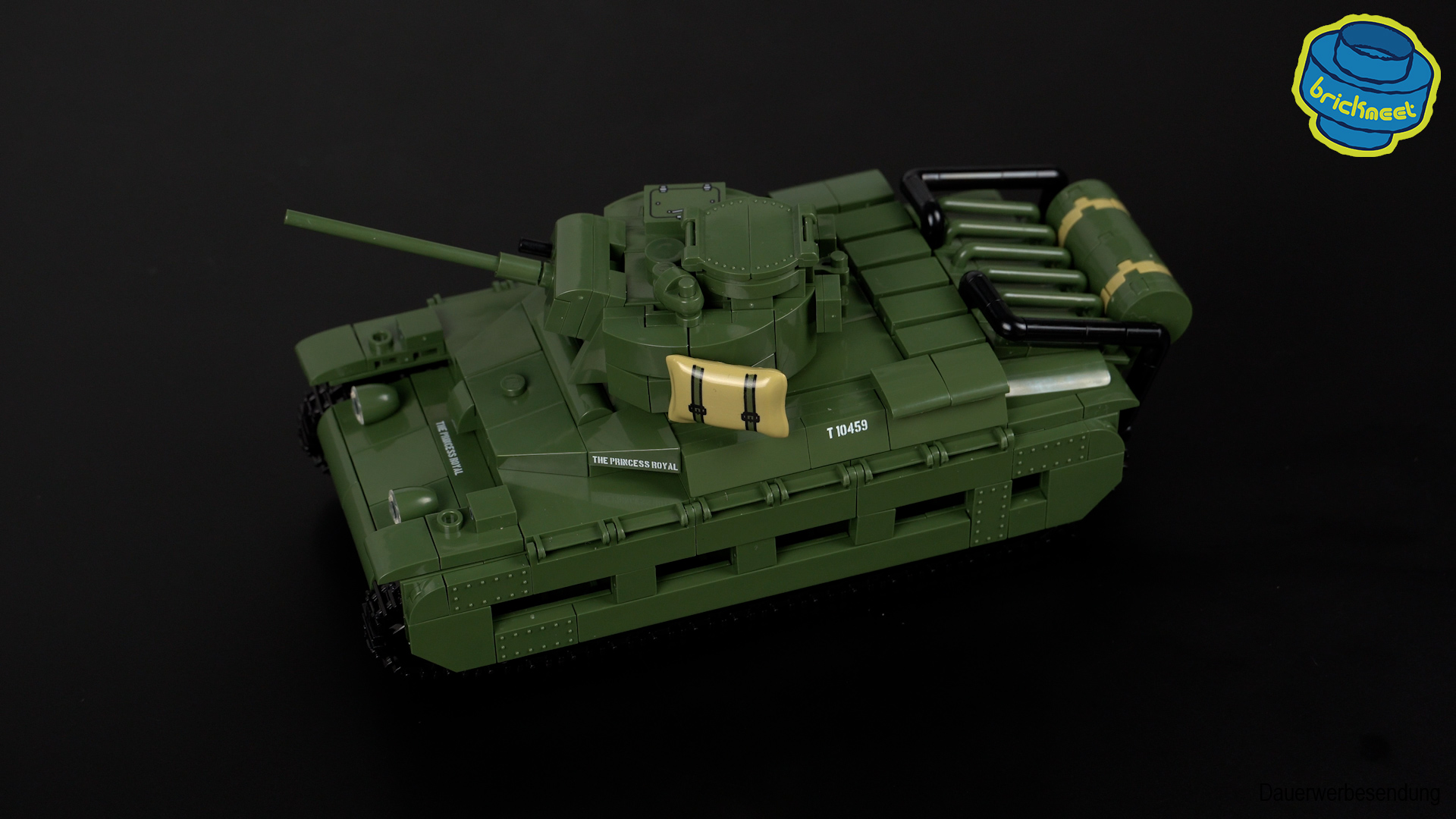 We start with the Matilda, for which a thick block of plates is first built. This builds up tension that causes visible gaps. The open side skirts consist of 2 separate parts that are connected at the end by a single tile. They tend to fall apart when you open and close them. Don’t expect too much from the chains. However, if you use them on somewhat rougher surfaces, they run quite well. Overall, the tank gets quite a lot of detail for its scale and makes a good visual impression.