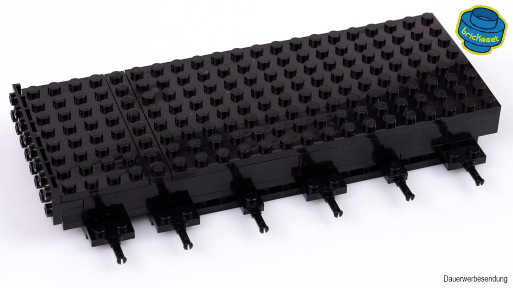 We start in the classic way with large 8×16 plates and plate modified for the rollers. Together with large bricks, these create a massive block with high stability.