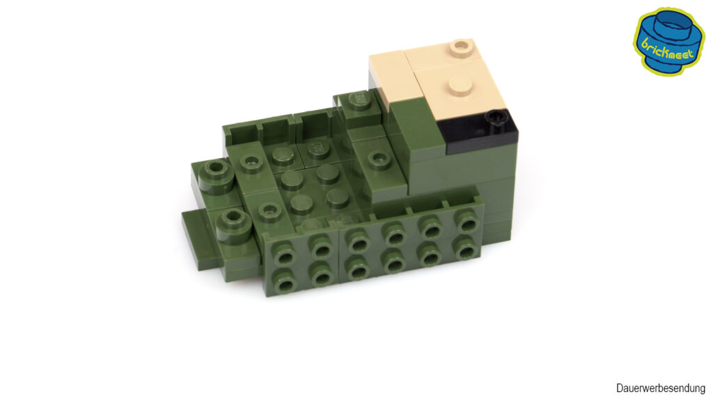 The construction is very similar to the other models from COBI. First, a base with plates and bricks is built, on which the armor is then attached all around by reversing the direction of construction. The barrel, and therefore the caliber, is quite sparse considering the size of the tank. As soon as the turret has found its place on the hull, the model is ready.