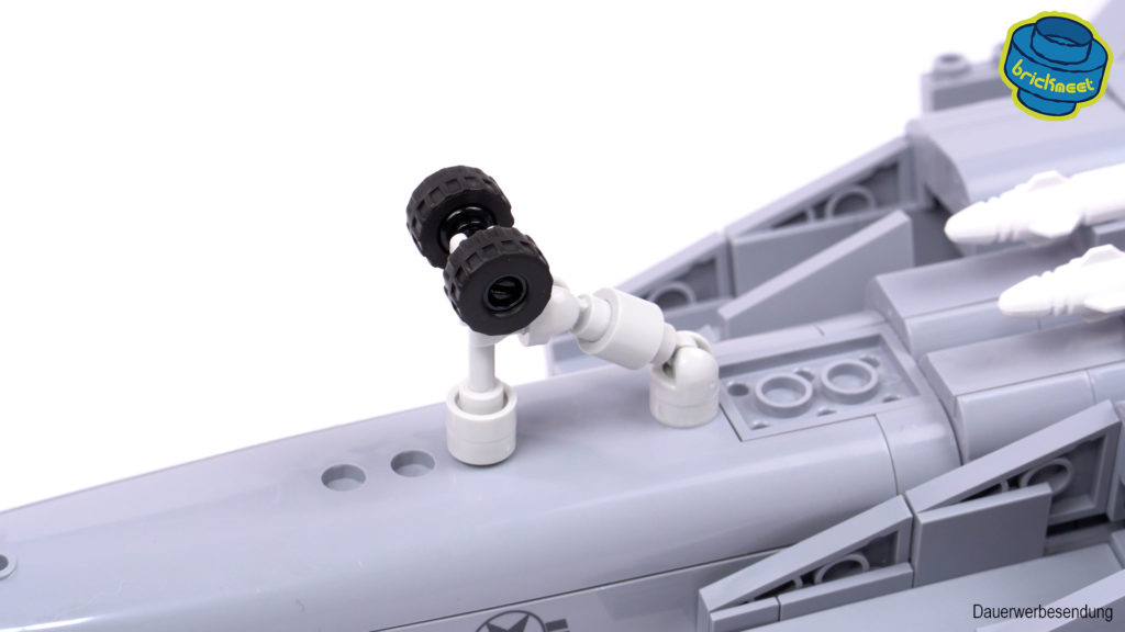 The two pilots are of course Maverick and Goose, who are given an oxygen mask in addition to a striking helmet. In the next few steps it is the turn of the wings. The rear wings can be moved minimally by being attached using a ball joint. As with the original, the large wings can be folded in and out. The very simple mechanism works really well and you don’t have to worry that the wings will detach from the fuselage. Next comes the undercarriage. This is not really any different from the other jets from COBI. The rockets are also known to the experienced builder.