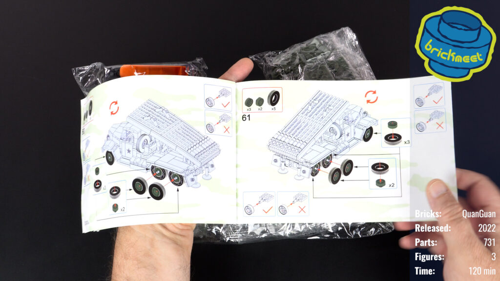 After building the cab and placing spare tires, we come to the rear and the rocket launcher. Unfortunately, there was a missing part here, which is used to attach the entire construction. However, this has not changed anything in terms of stability. Finally, only the front tires and the twin tires of the two rear axles are attached.