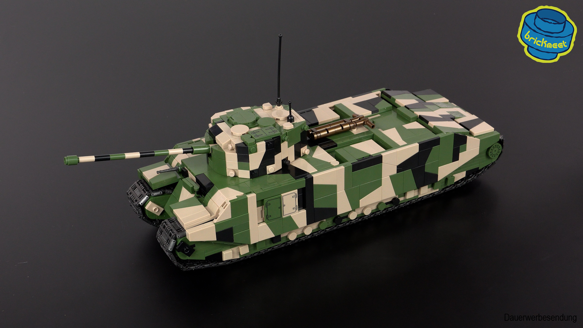 The hull of the TOG II is built in 2 stages. First, a narrow chassis is created, which will later accommodate the rollers. Then comes the guide for the tracks, which is placed as a whole on the substructure. This is followed by further construction and a little interior design. This could have been a bit more generous. It’s not entirely clear to me why the strange engine made of molded parts is used here and not built from building blocks.
